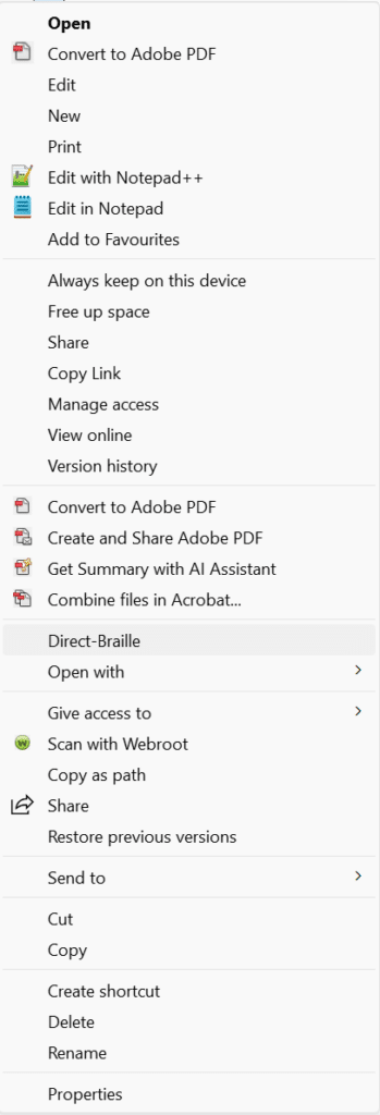With idB you can directly send standard files to print by right clicking your file and selecting Direct-Braille.